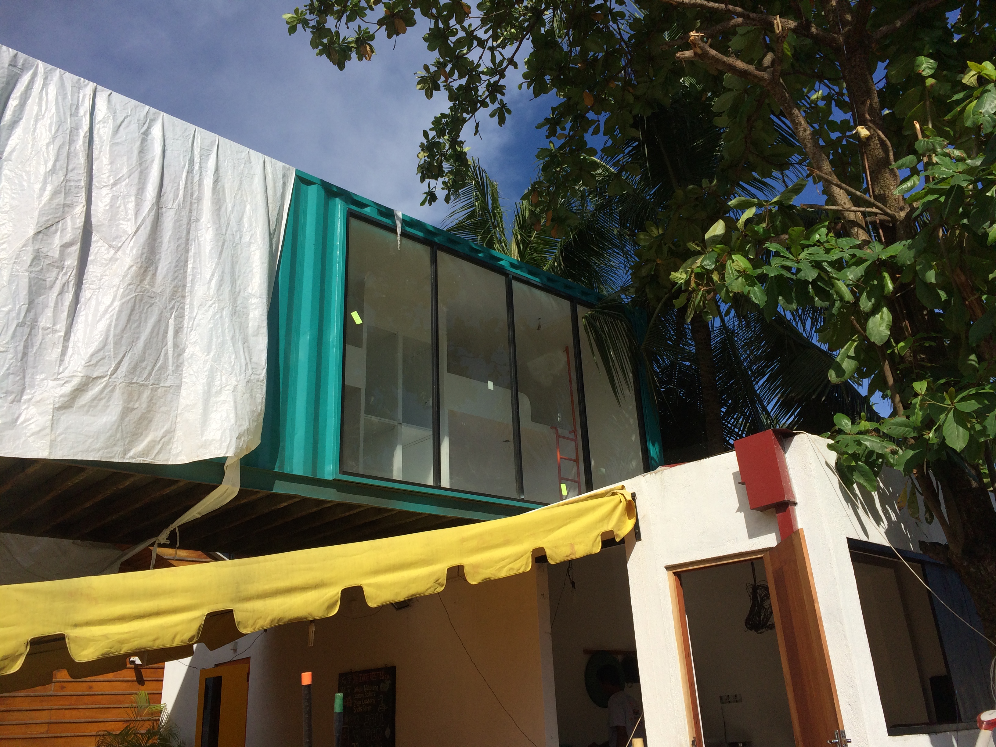 Wir freuen uns riesig, sie noch einmal sehen zu können und vor allem auch das „Hangover Hostel“ kennenzulernen, für das sie die Monate über als Volunteer gearbeitet hat. Neben den ’normalen‘ bestehenden Räumen haben sie dort Schlafräume (Dorms) für 4 Personen und auch die Duschen/Toiletten in Containern eingerichtet. Sehr geniale Idee! (Thisara ist sehr beeindruckt, nach dem Verlust des gebauten Hauses scheint sich eine Idee für ein neues Zuhause zu entwickeln… 😉